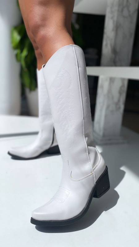BOTA DE MATERIAL GAMUZADO Y SIMIL CUERO. CAÑA DE 29 CM. TACO DE 7CM.