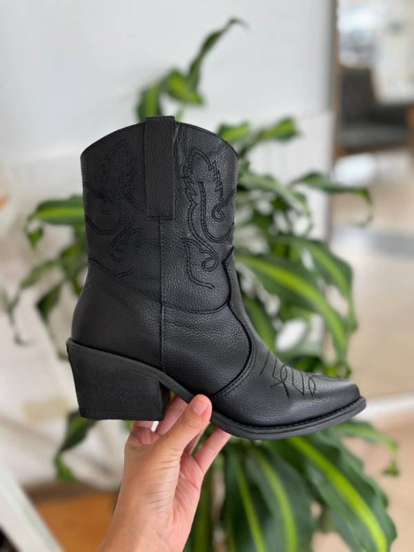 TEXANA DE MATERIAL VEGANO. SIMIL CUERO CON DETALLES DE BORDADO EN NEGRO. CA...