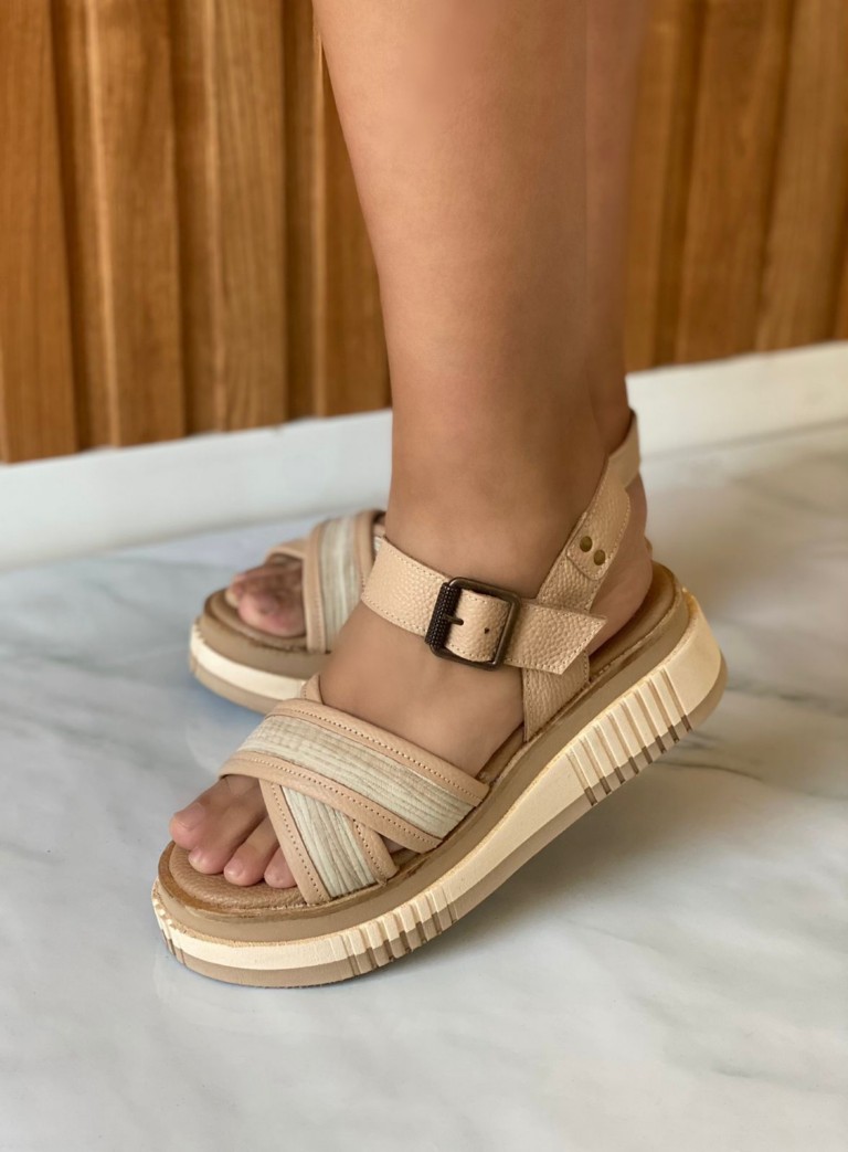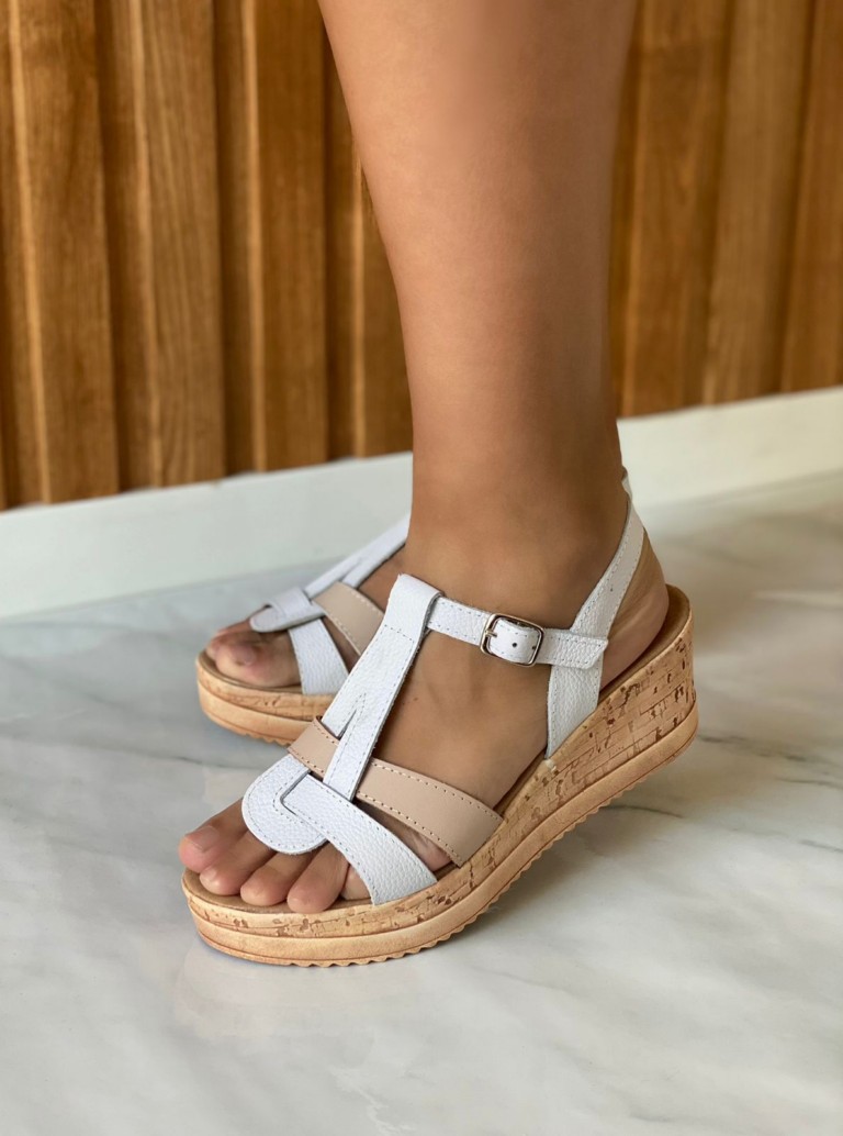 material cuero vacuno. taco es sintetico diseño corcho. Muy livianos.